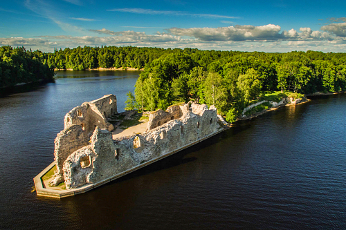 bedeutender Geschichte als Hansestadt und Sitz der Rigaer Bischöfe, wovon die Burgruine am Flussufer bis heute Zeugnis ablegt. Sie